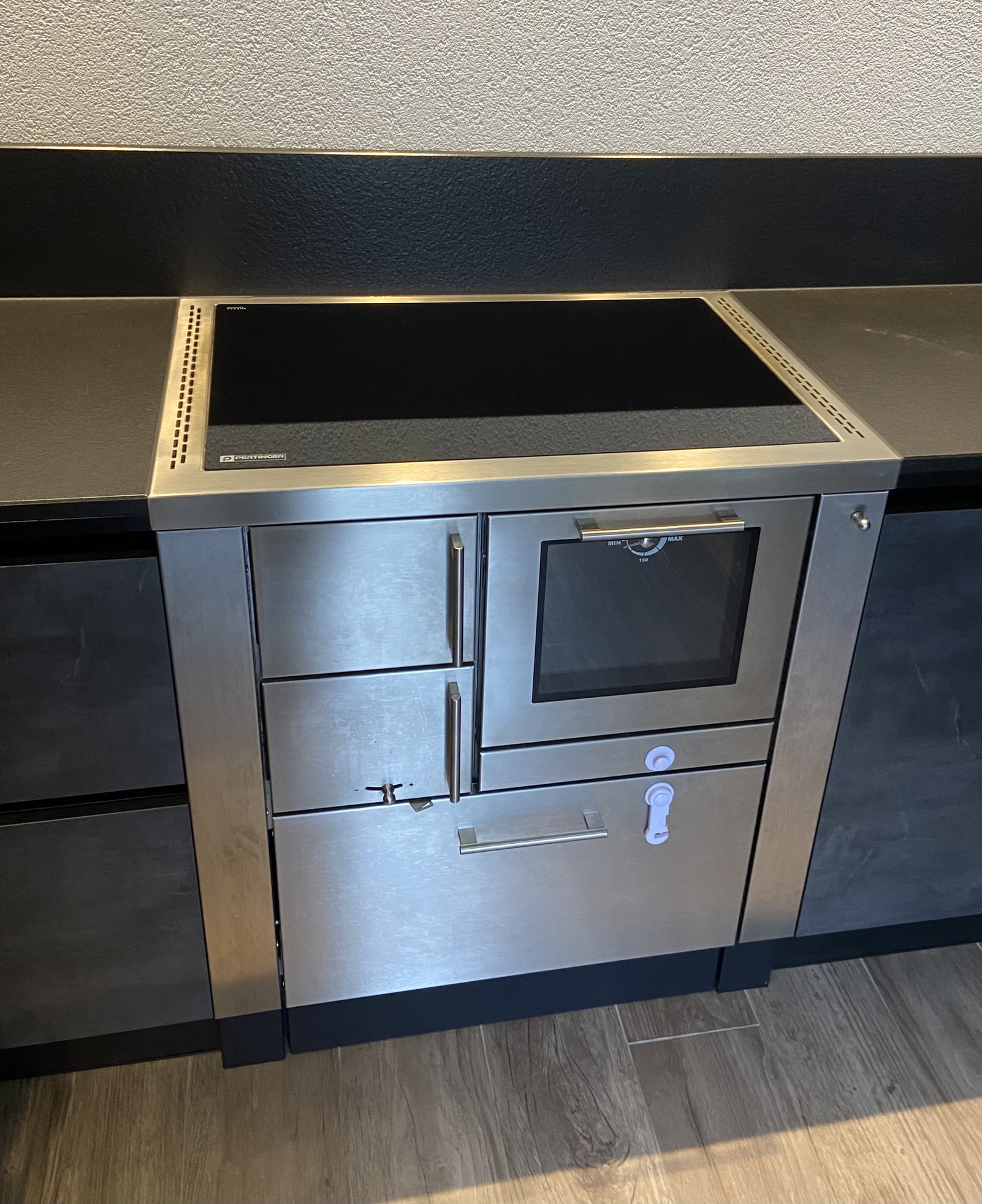 Der Backofen „Friedl“ ist komplett gedämmt und seine Außenverkleidung aus 4 mm starkem Stahl sorgt für Stabilität, Langlebigkeit und eine markante Optik. Mit einer Backflächenhöhe von 93 cm bietet der Ofen eine besonders komfortable Arbeitshöhe.